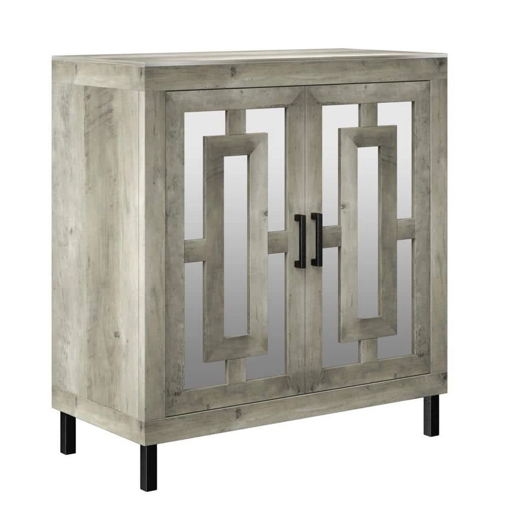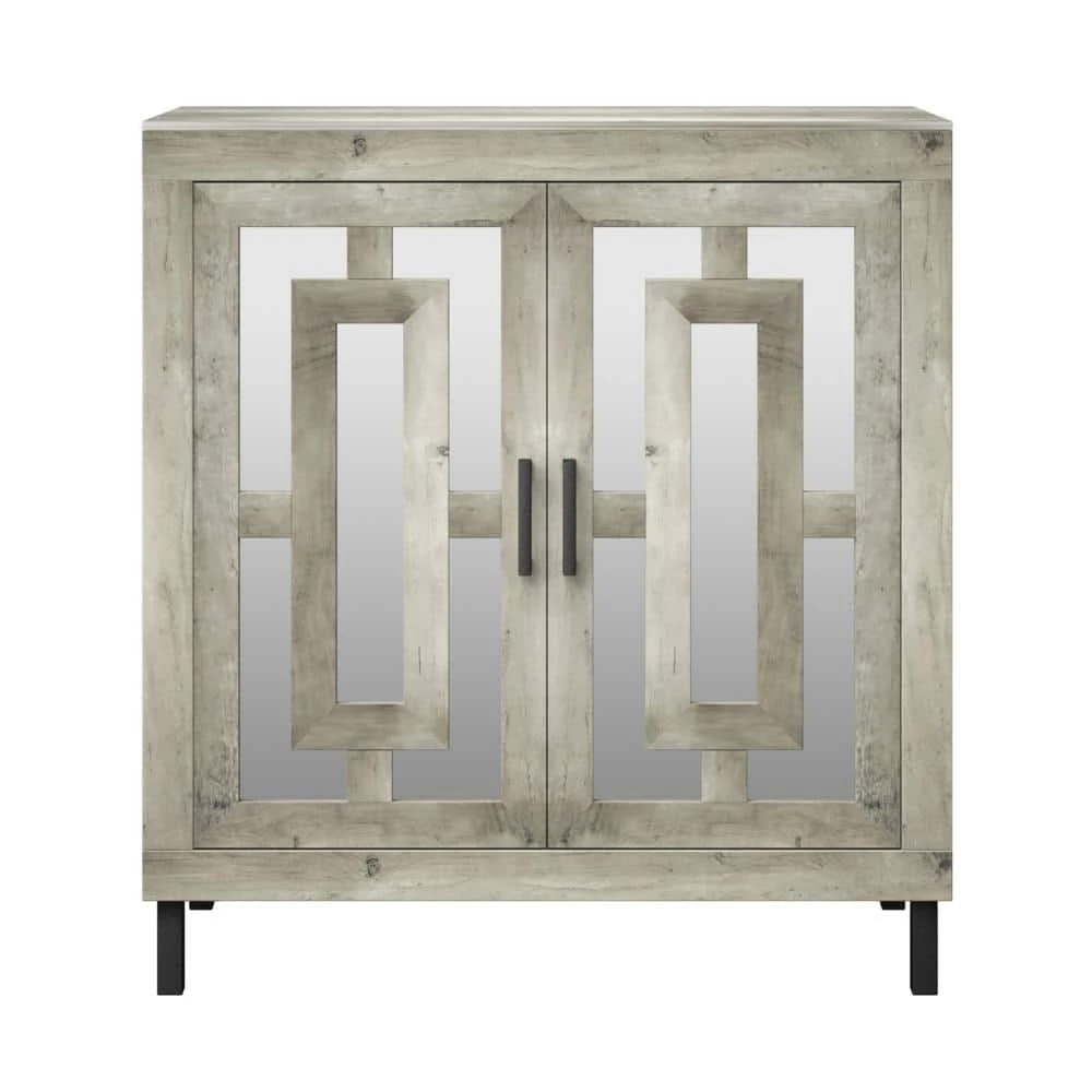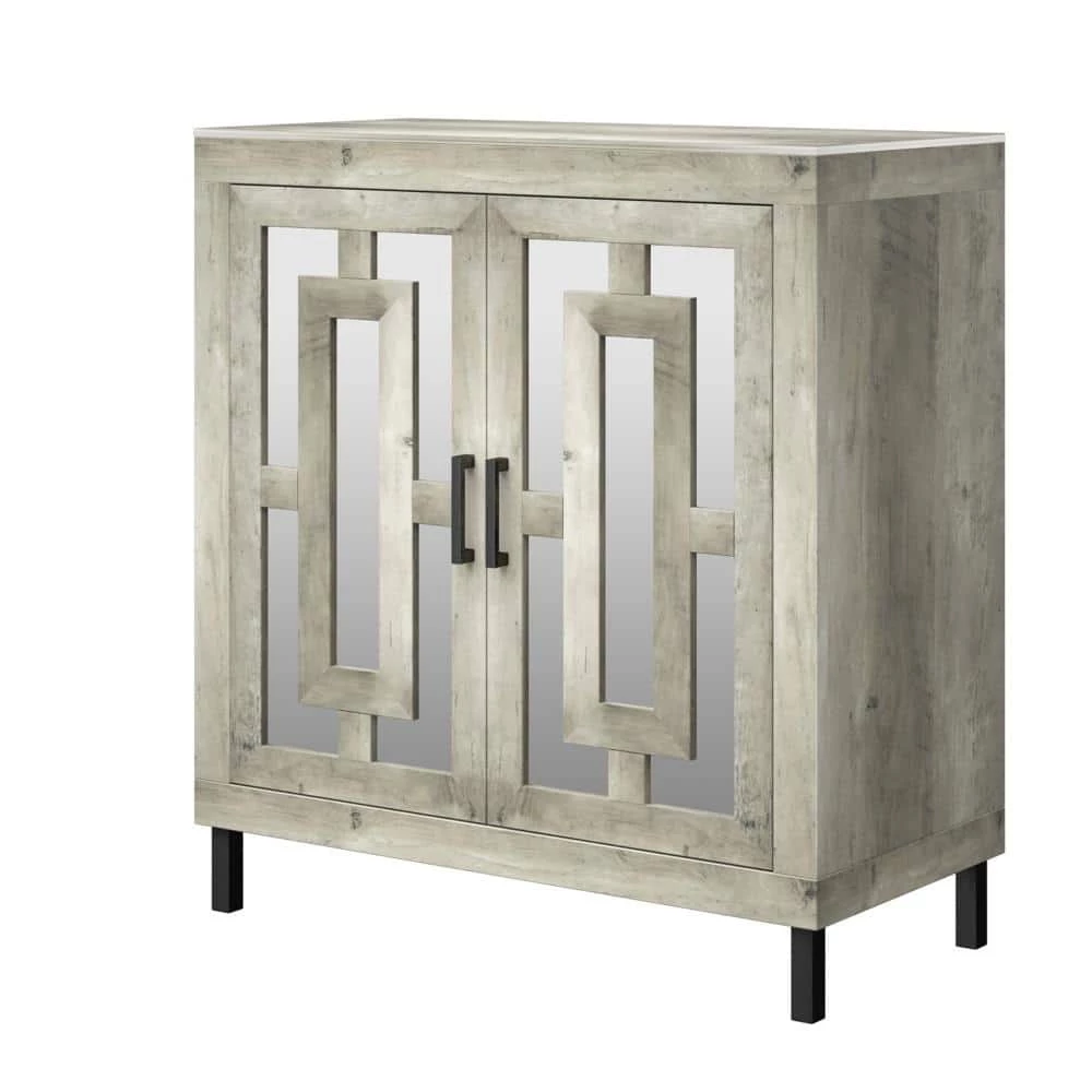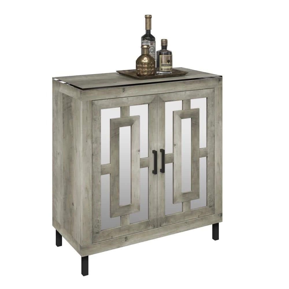 Have it all during your next night at home with friends with this bar cabinet that features both glam and coastal design elements. A built-in stemware rack and wine bottle storage offer you functionality while mirrored doors with decorative mullions make you look like a style expert. Once guests arrive, you can mix up cocktails and keep wine flowing worry-free on the tempered glass top that is easy to clean.