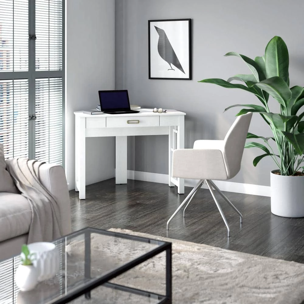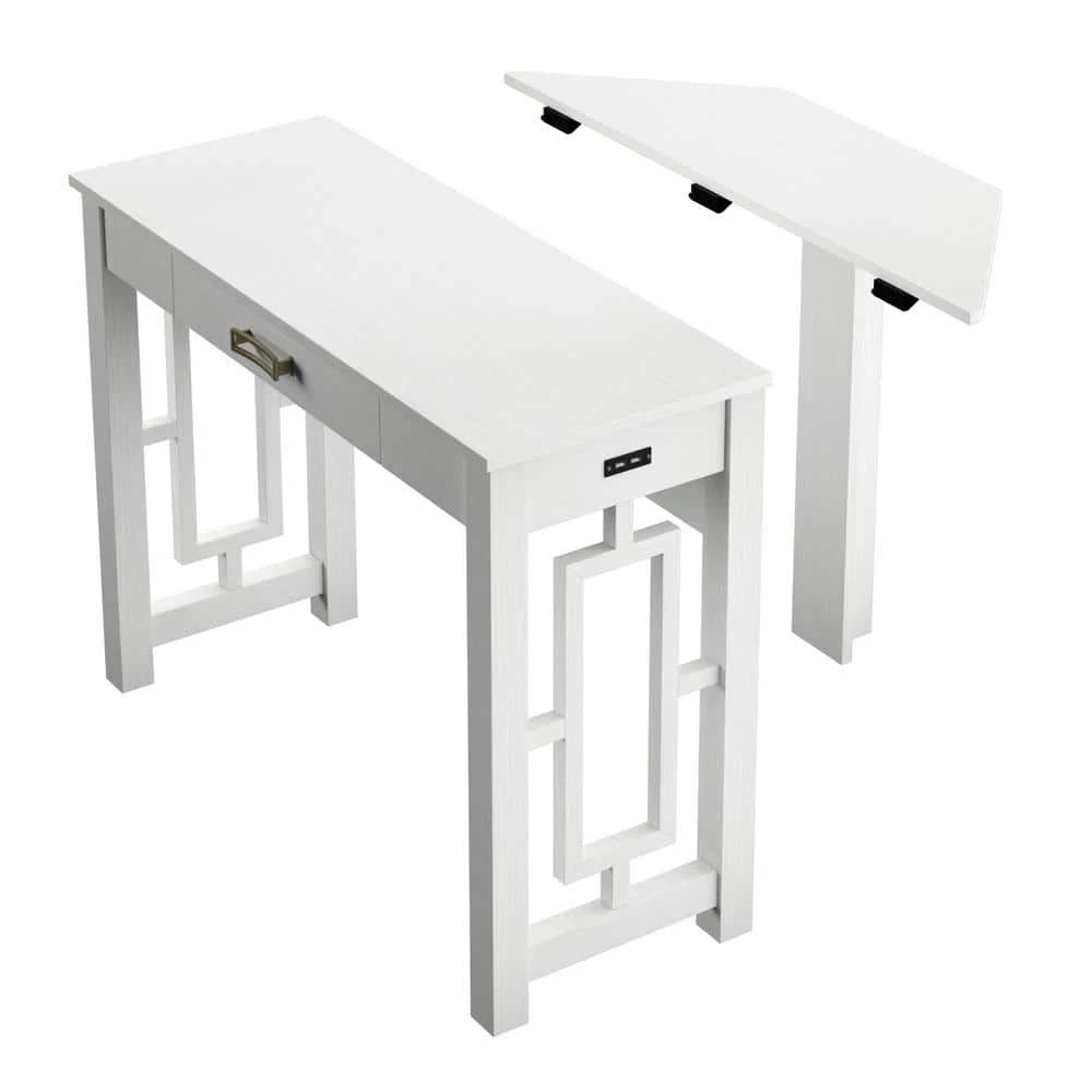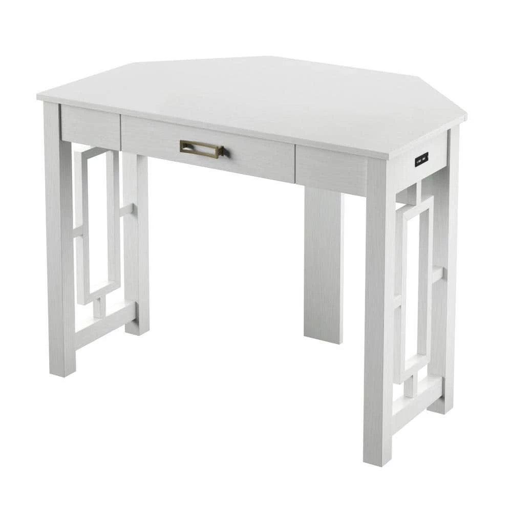 Whether your home is large or small, this desk with power features glam style and a space-saving design for a multipurpose piece of furniture that does it all. It can be placed against a wall or used with the included corner extension to fit into any corner and maximize floor space. This multifunctional desk also has two built-in USB power ports for integrated charging of your phone, tablet, or other tech. A convenient pencil drawer offers a spot for writing utensils or keeping charger cables handy. Use this versatile piece as a desk in your home office, as a sofa back in your living room, or even as a convenient entryway console table.