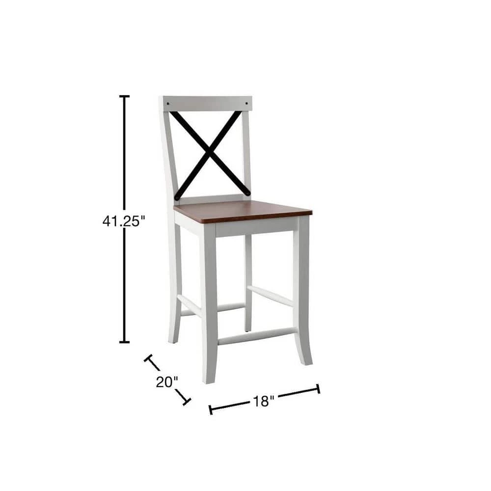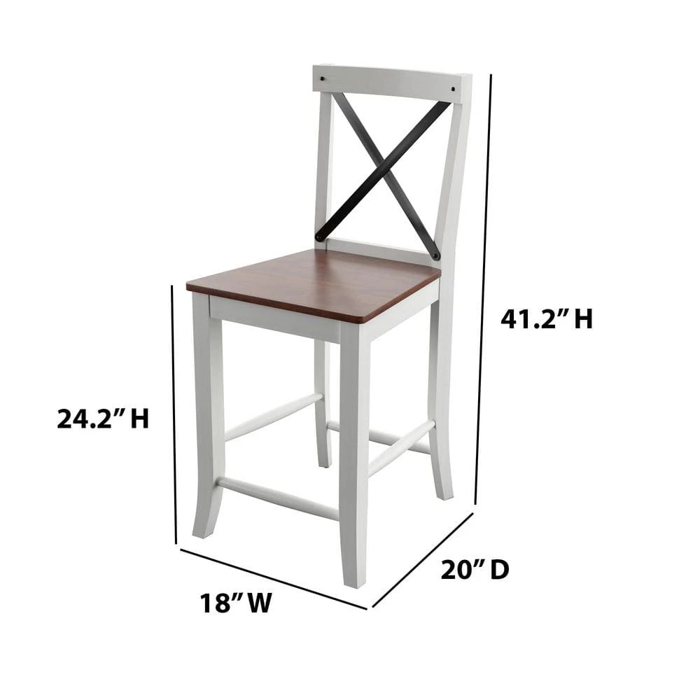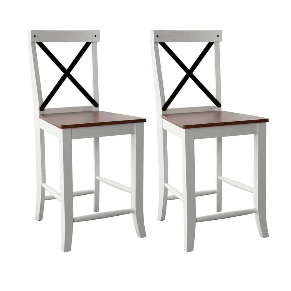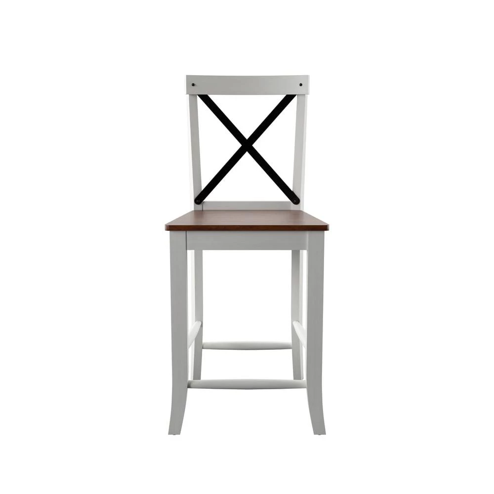 This set of two counter-height barstools offers stylish, casual seating for your breakfast bar or pub-style dining table. Rustic finishes combine with a metal cross back design for a modern farmhouse look with just a touch of industrial edge. Beautifully crafted with Birch wood veneer and solid wood legs, you can also count on these dining stools to last you through many meals and gatherings.
