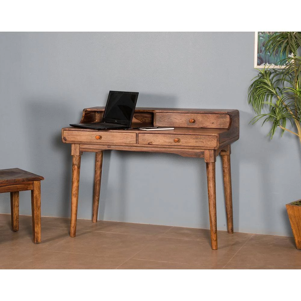 Sort recipes and plan meals in the kitchen or write letters in the den, our three drawer writing desk is just the right size to fit in any room. The warm Brownstone finish, long tapered legs and a split level top give it a classical charm that you will enjoy for years to come. Create a charming home office with this as the centerpiece or writing nook.