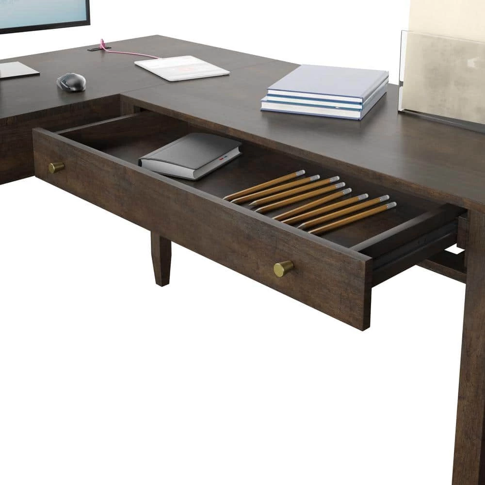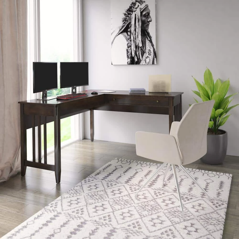 This L-shaped desk offers plenty of room to multi-task whether you are working or playing. The L-shaped design allows you to spread out a bit more while also fitting into any corner of your home for a workstation that maximizes space. Place multiple monitors, a pro-gaming setup, or home decor items like an accent lamp and decorative plants on the desk’s large, open surface. Get even more done with the two built-in USB ports that will keep your devices powered all day long. A wide drawer also provides ample hidden storage for small items like pens and paper clips, or even a keyboard.