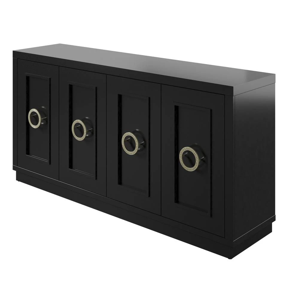 Ample storage meets commanding style. Keep dining room essentials and entertaining supplies accessible with a double door design that makes it a snap to stow trays, cook wear, or serving dishes. Large ring statement hardware provides your space with an updated look, while adjustable interior shelves make it easy to design a custom storage solution. Matching collection pieces allow you to continue the signature look throughout your room and beyond.
