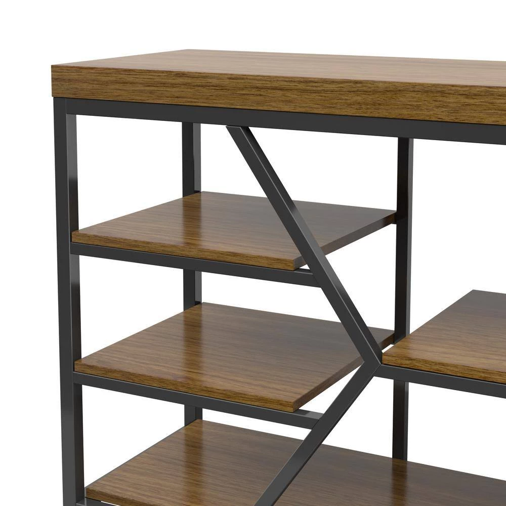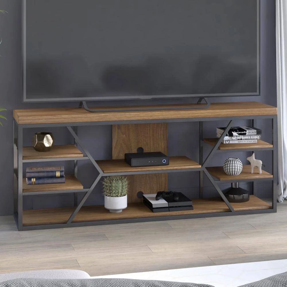 This contemporary, two-tone TV stand features modern lines along with a contrasting frame and shelves for a modern look. The open shelves provide plenty of space to hold decorative accents, movies, games, and more. You’ll also have easy remote control access to your electronics. Designed to accommodate most TVs up to 80 inches and 90 pounds, this stand will let you catch up on your favorite series or watch every game of the playoffs in style.