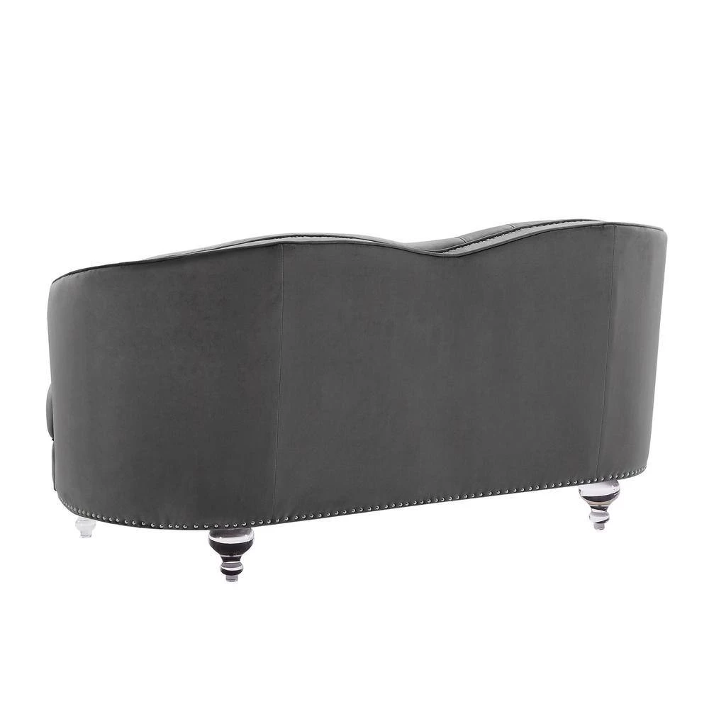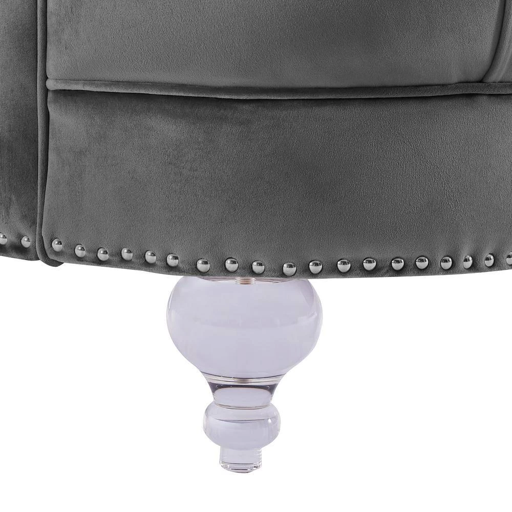 The collection includes a Loveseat and two pillows. Featuring deep button tufting, transparent acrylic legs and nailhead accents that combine to create an elegant Modern Victorian style. Plush velvet is deeply tufted with faux-jewel buttons. Comfort and durability, as well as great retro glam look. Upholstered in high-quality woven fabric atop premium high-density flame-retardant foam for a luxurious medium firm feels. High-strength sinuous spring suspension for long lasting comfort and support.