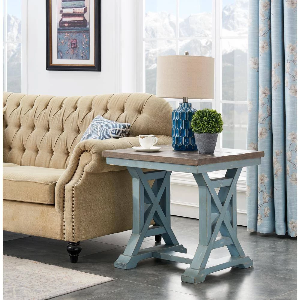 Your style is casual, no fuss, clean and classic. We understand, which is why we know you are going to love this End Table with the natural wood grain plank top and a base finished in our soothing Bar Harbor Blue. The trestle styling of the base provides just the right amount of design elements to draw the eye, yet not overwhelm the senses. Perfect. Yes, simply perfect.