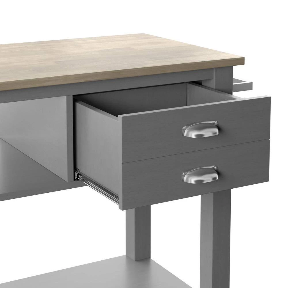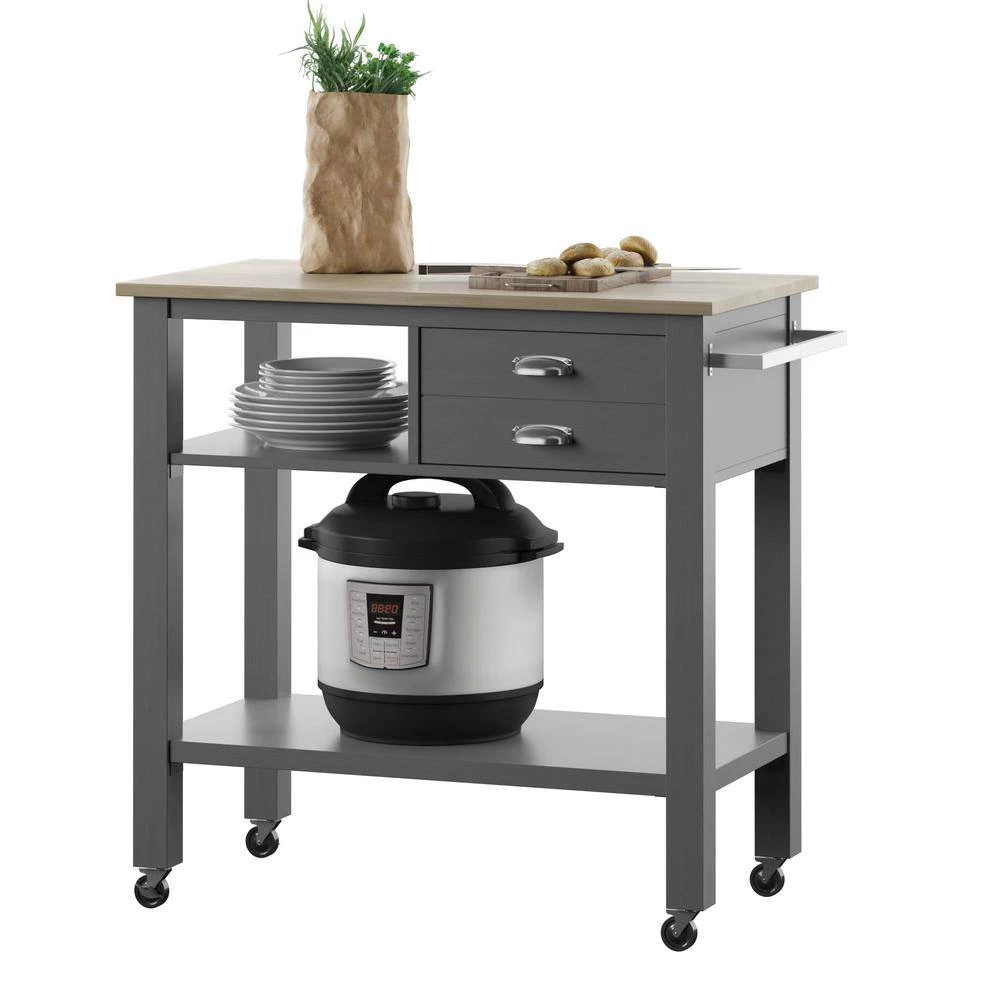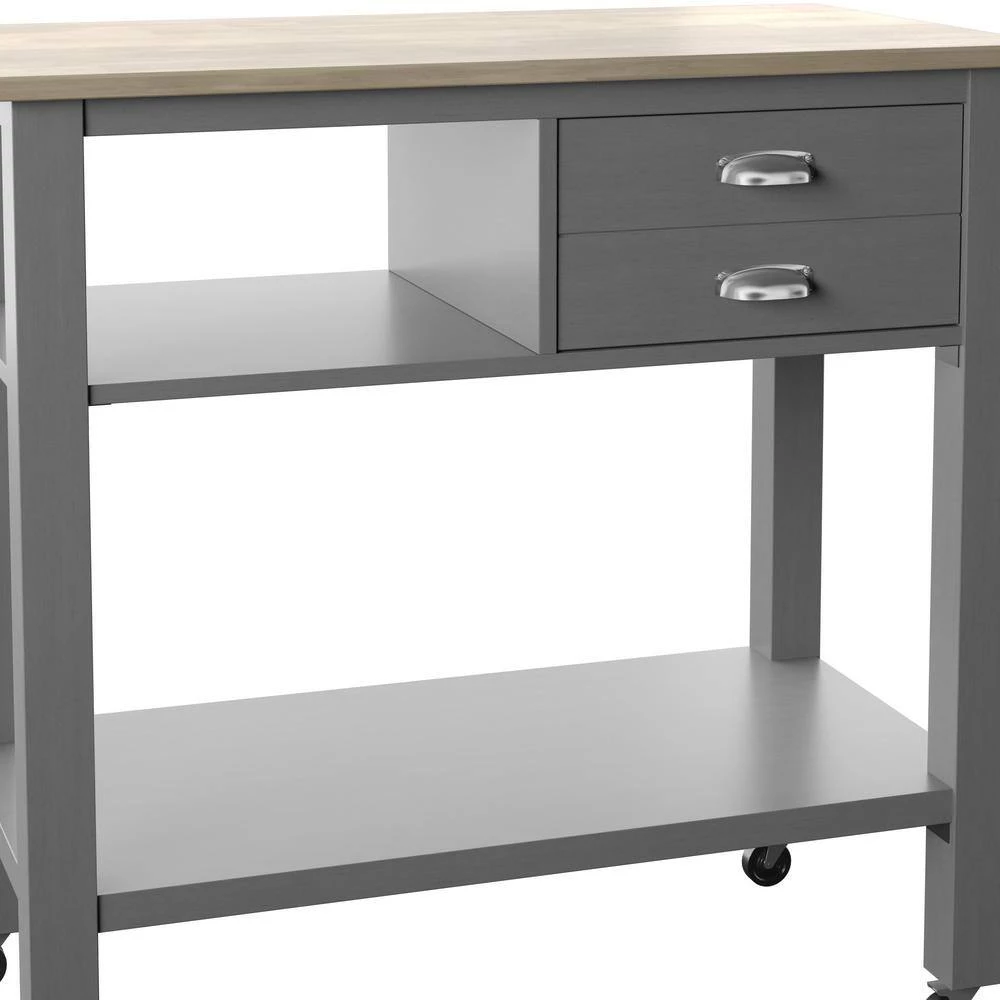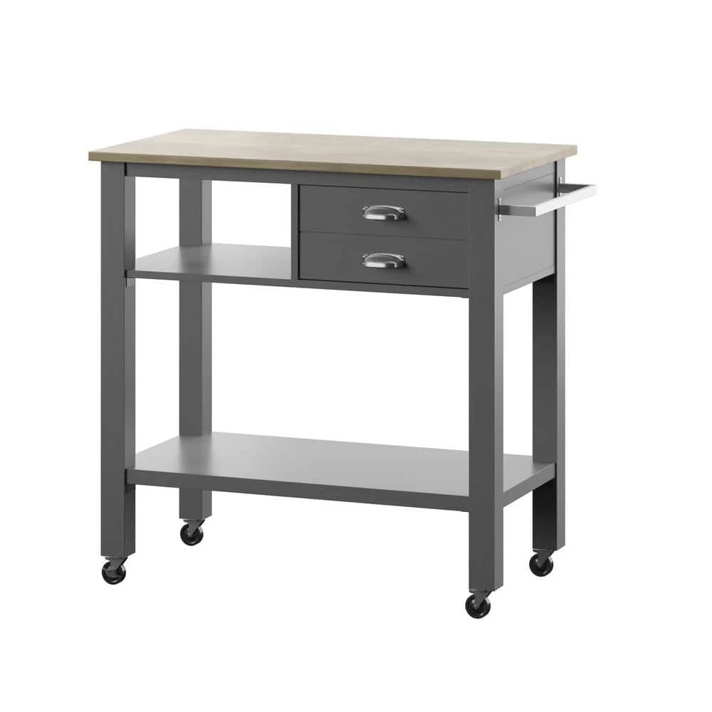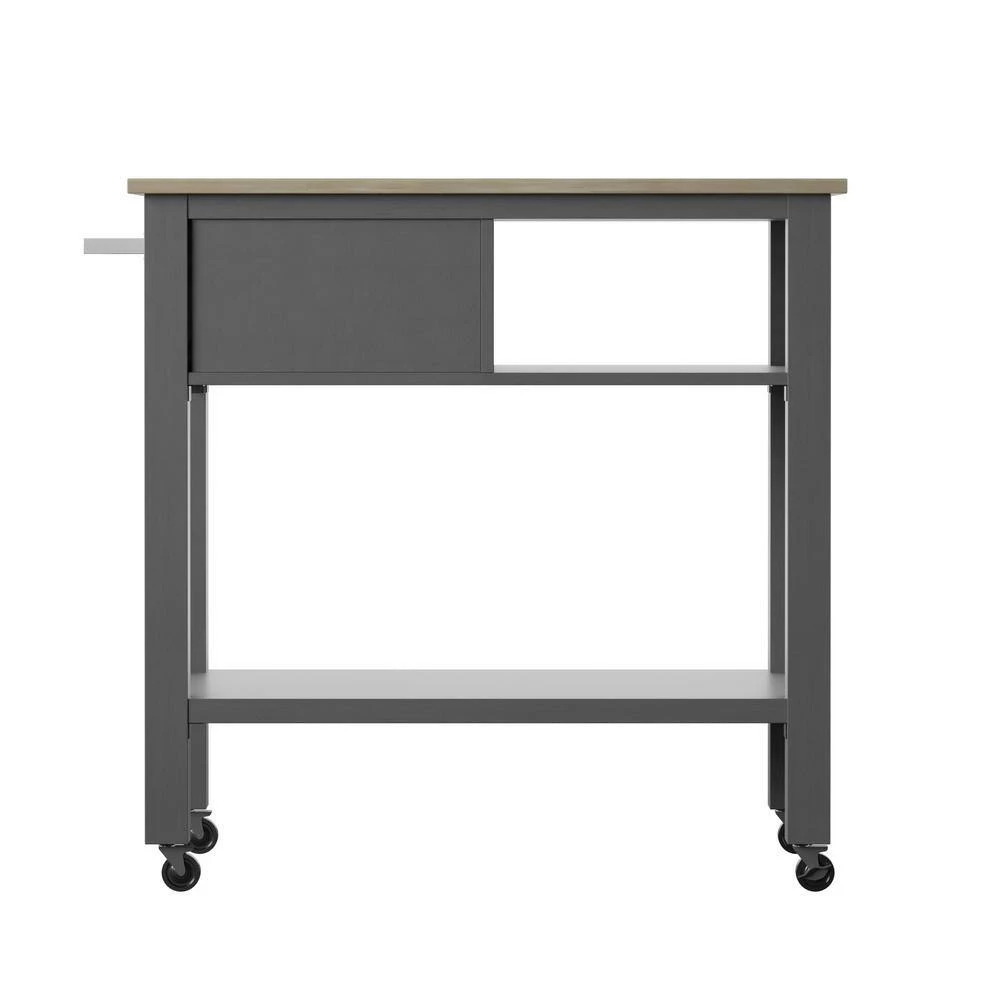 This rolling kitchen cart is designed to meet all of your mealtime prepping, serving and storage needs. The top is a large enough workspace to lay out everything you need for your meal while the attached towel rack allows you to be ready for any accidental spills and splashes. Open shelving gives you plenty of space for storing appliances like a multi cooker or extra dishes and mixing bowls. Stow your smaller items like basters and spatulas in the upper storage drawer for added convenience. With four wheels on locking swivel casters, this kitchen cart is highly mobile to make serving a breeze.