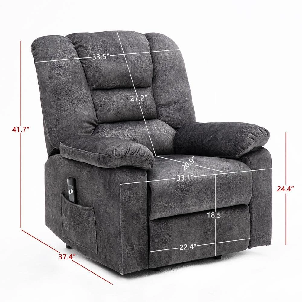 Designed for the elderly, this recliner helps users stand up easily and avoid extra stress. The all-electric massage heated recliner boasts lift, sit, and recline functions easily adjustable with the included remote. Plush pillowtop arms and ultra-soft polyester microfiber upholstery complete this comfy chair. Manufactured with heavy-duty steel, the base motor-powered framework supports up to 330lbs. You will get 2 boxes, very easy assembly, all parts and instructions included. Contact us freely if you have any questions.