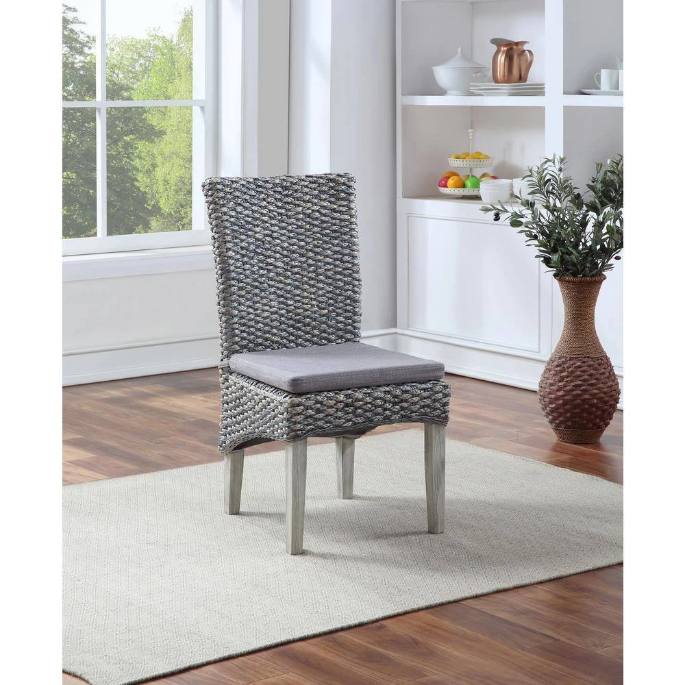 Our Heron Grey Woven Sea grass Dining Chair brings that natural element inside in a distinctively sophisticated manner. High backed with a curved skirt that wraps around the tapered wood legs, and with a padded seat cushion for additional comfort. This Dining Chair will be ideal in your seaside home or mountain top retreat.