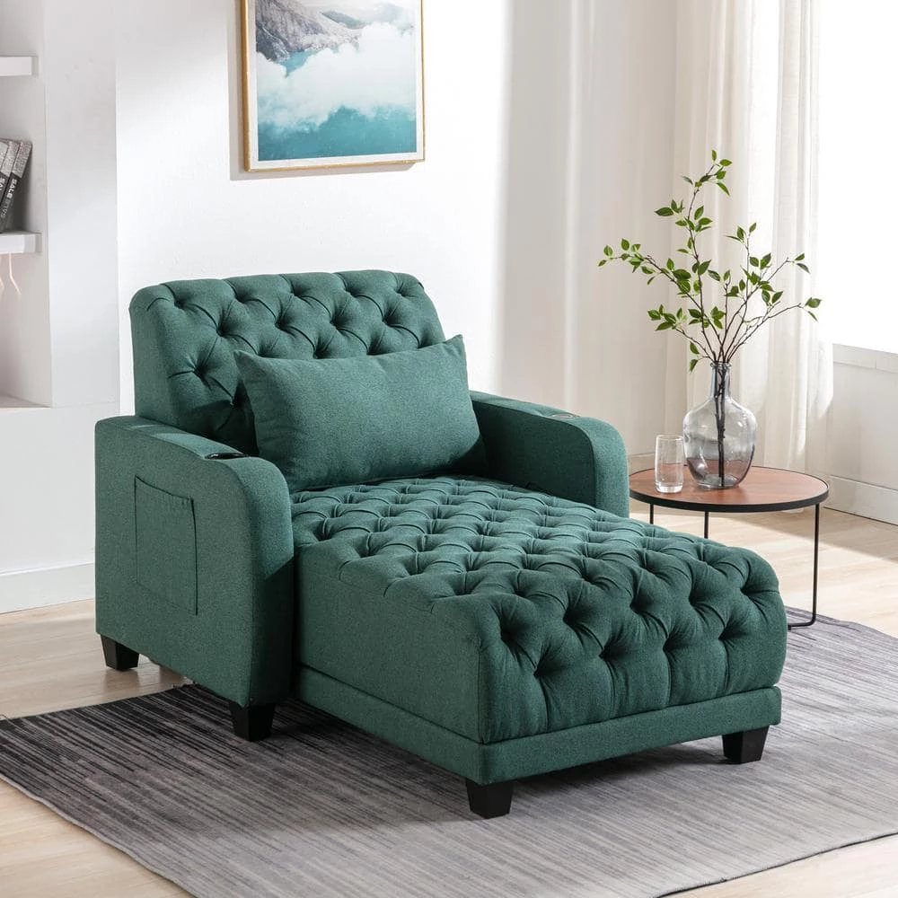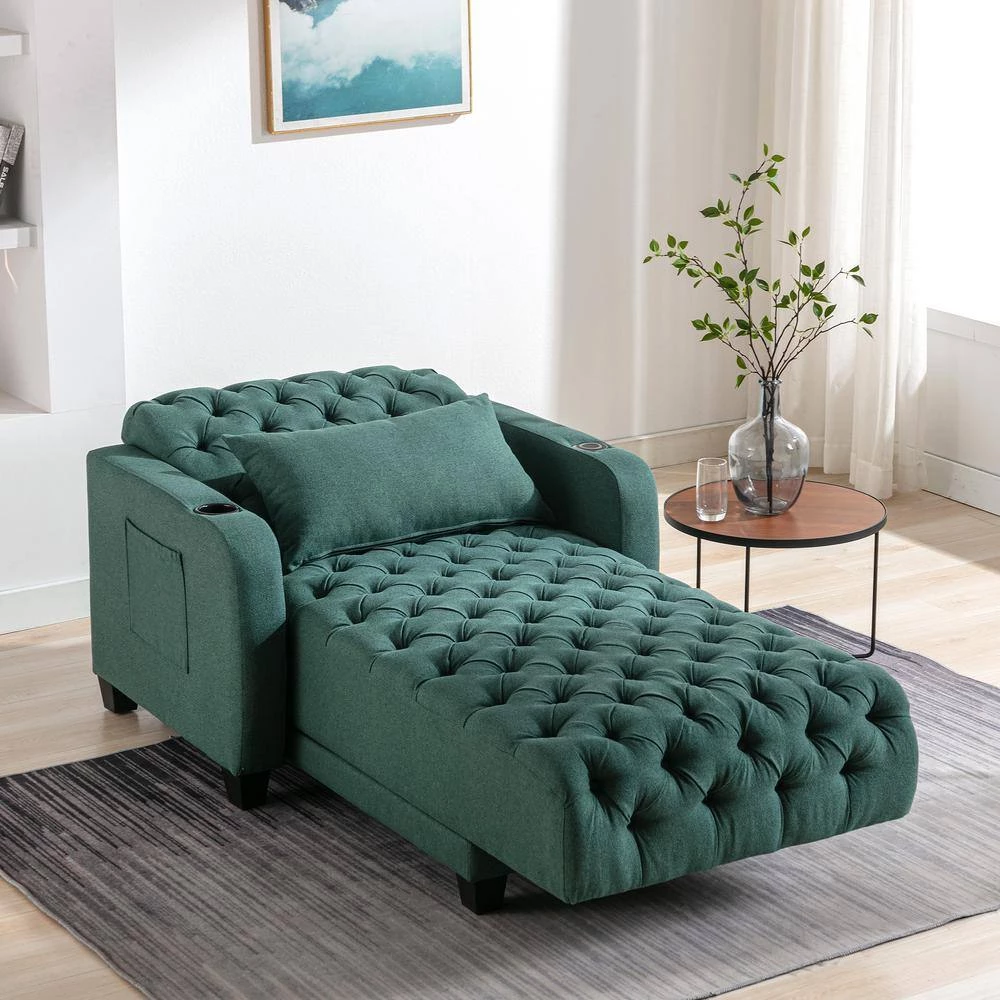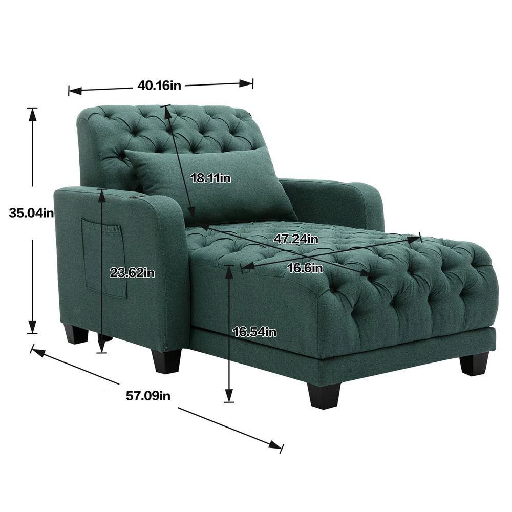 The power electric chaise lounge chair is covered in polyester fabric with decorative tufted design decoration. Featuring an angle-adjustable backrest and seat, you can easily change the height and length of the lounge chair according to your personal preference. Place your QI-enabled device onto the wireless charging ring and let the power flow. It is a multifunctional use of ottoman, sofa chair, recliner, and sleep bed. Its compact size fits your living room, dormitory, apartment, bedroom, or office.