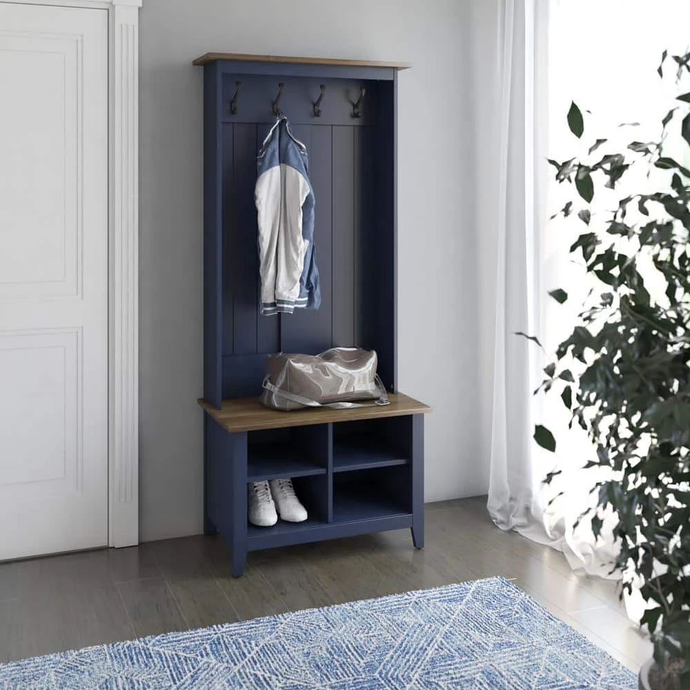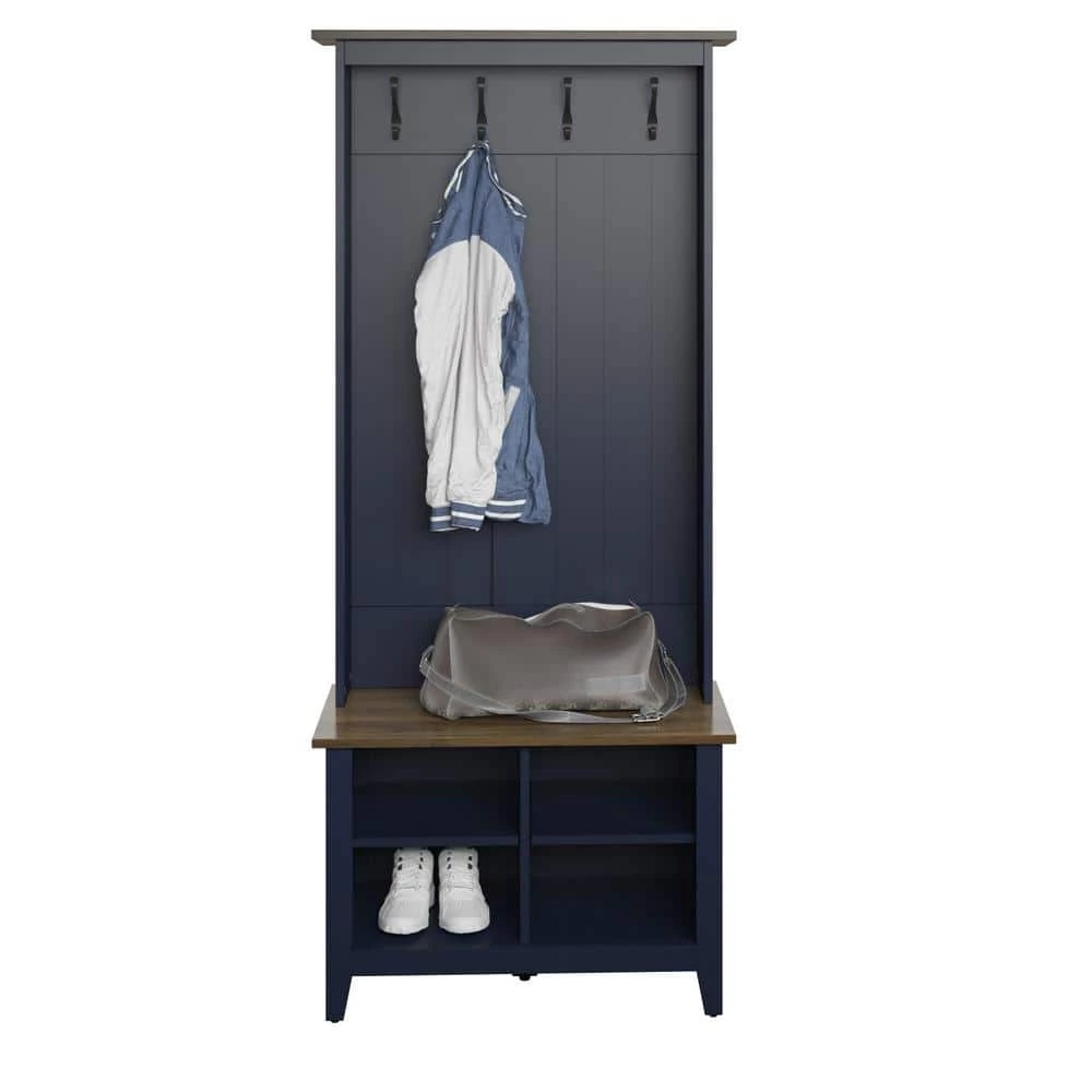 Keep all your jackets, shoes, and scarves organized with this beautiful hall tree. With rustic charm and a 2-tone design, this tree keeps your space stylishly simple. Perfect for hallways, mudrooms, or next to the front door, the 4 hooks will give you a secure spot for all your coats and bags. Plus, with extra storage in the adjustable lower compartments, everything will stay nice and tidy.