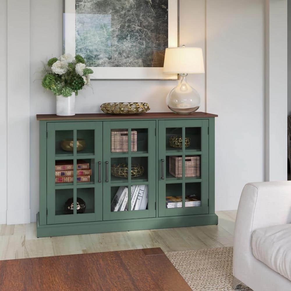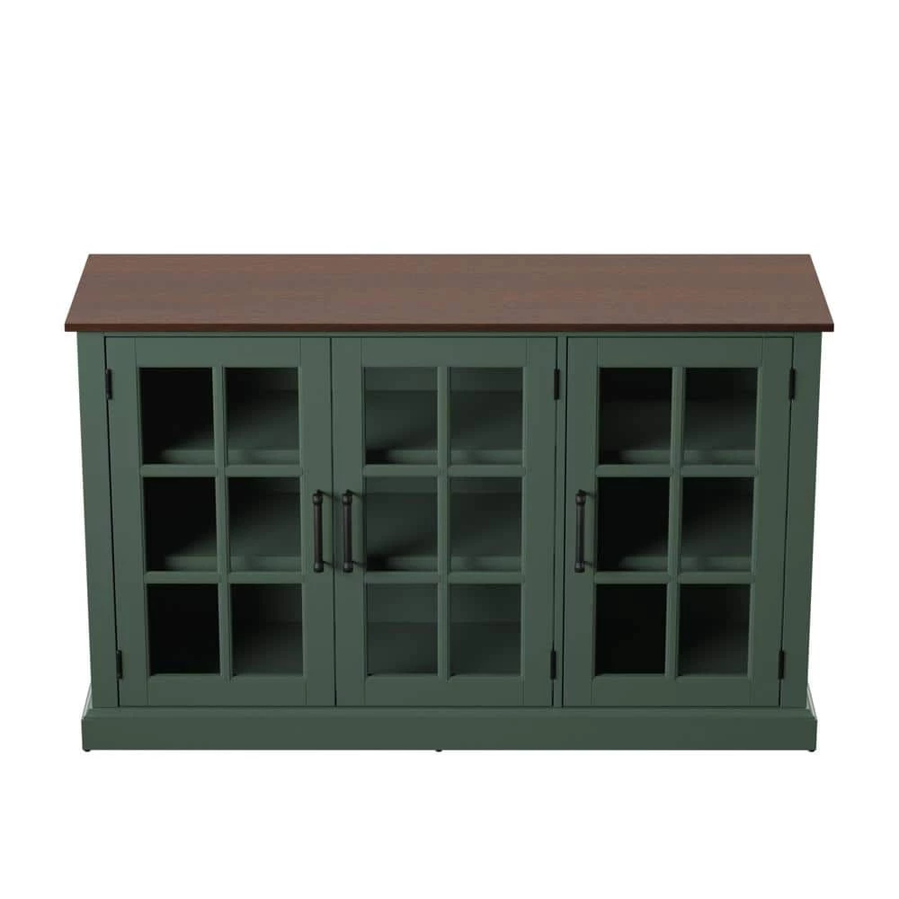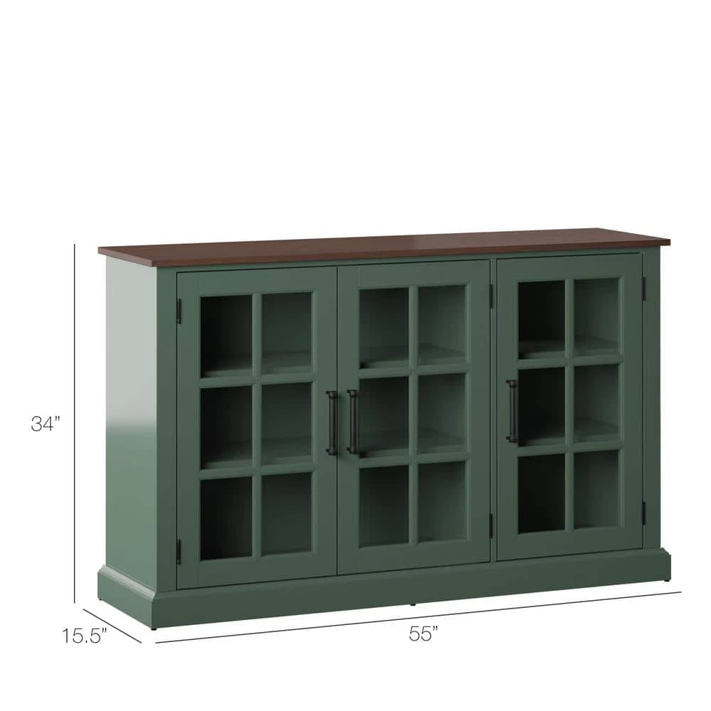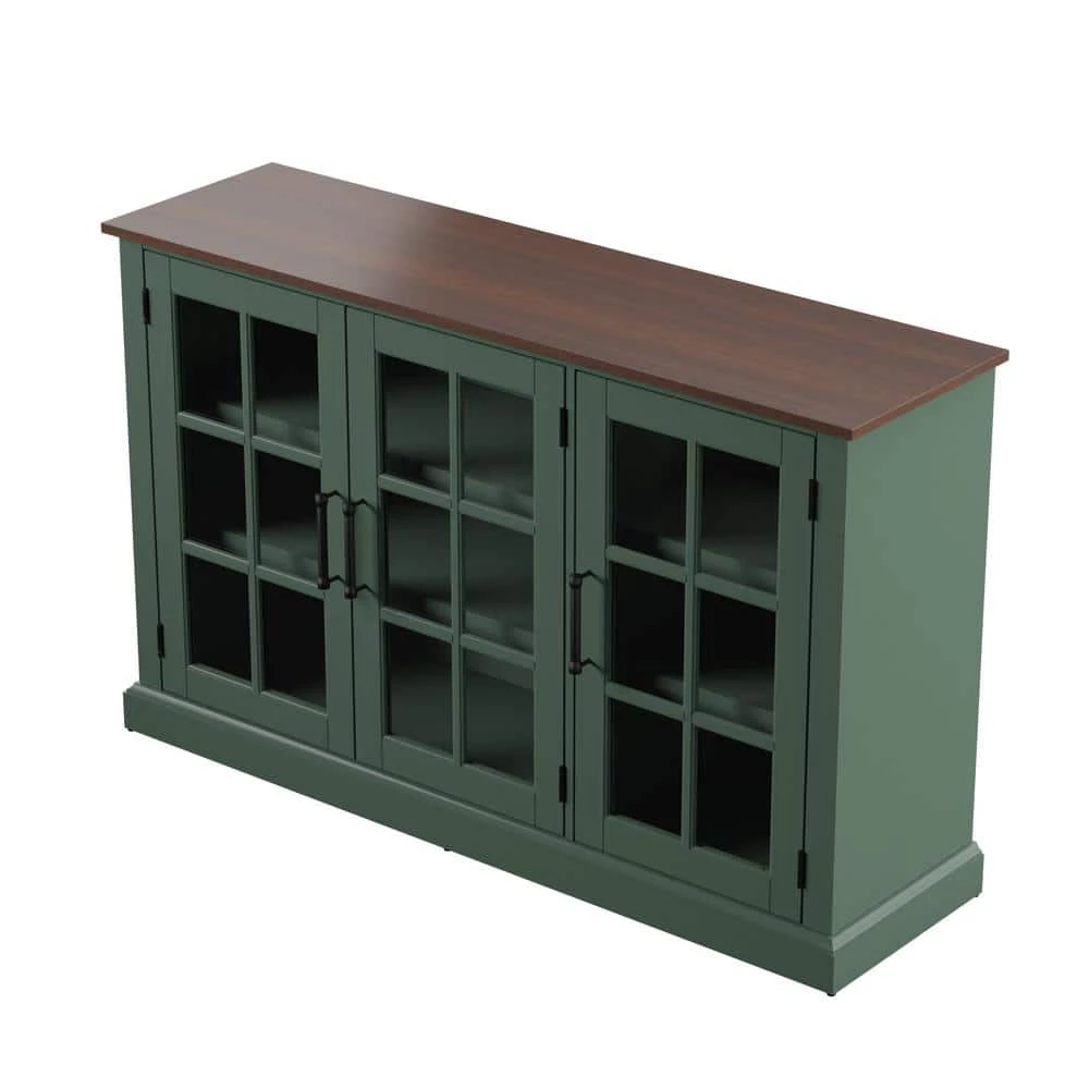 Turn heads at your next dinner party with this sideboard inspired by cool coastal style. A two-tone design brings character and charm to the table while glass paned cabinet doors with screen-printed mullions add dimension and easy-to-clean beauty. This stylish piece is also multifunctional and isn’t exclusive to your dining room. It can also be the perfect upgrade to your living room and hold most flat screen TVs up to 60 in. and 75 lbs.