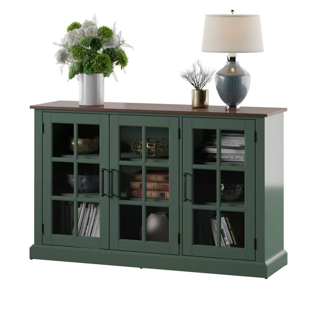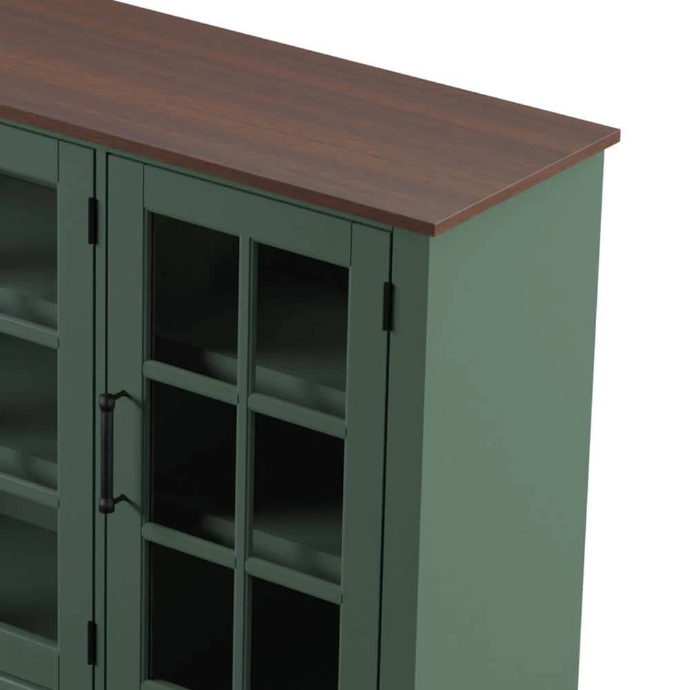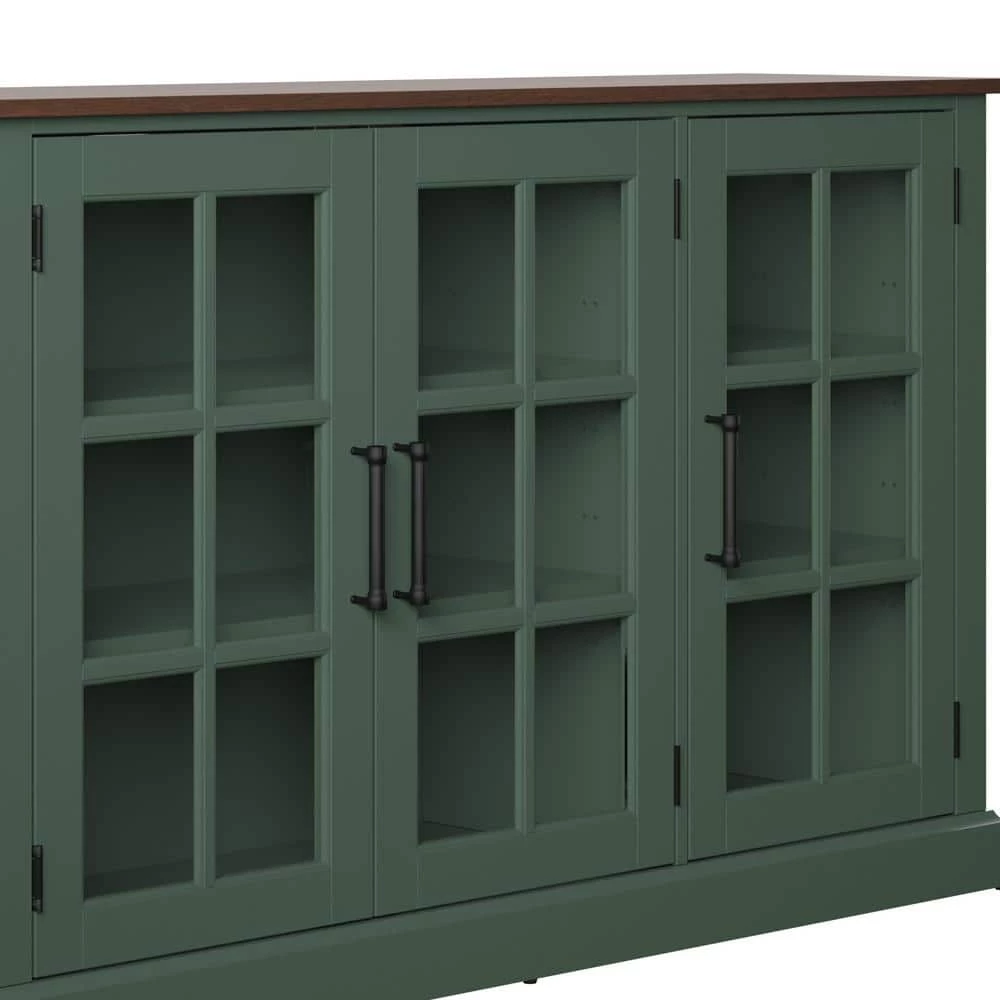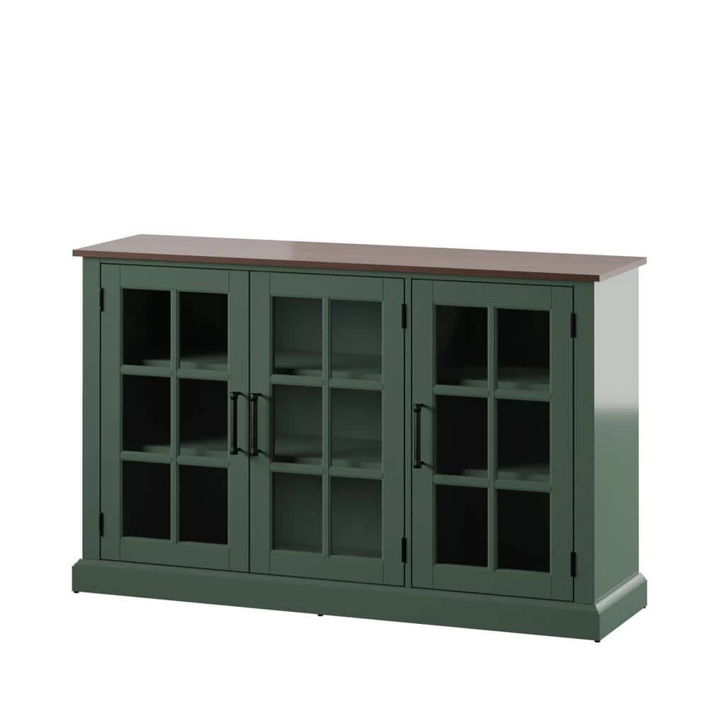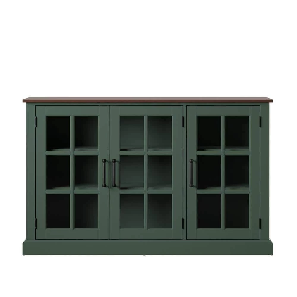 Turn heads at your next dinner party with this sideboard inspired by cool coastal style. A two-tone design brings character and charm to the table while glass paned cabinet doors with screen-printed mullions add dimension and easy-to-clean beauty. This stylish piece is also multifunctional and isn’t exclusive to your dining room. It can also be the perfect upgrade to your living room and hold most flat screen TVs up to 60 in. and 75 lbs.