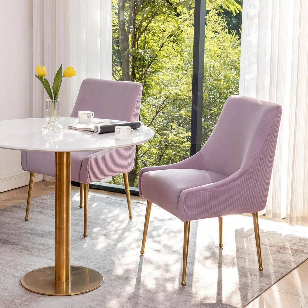 Chic pleated back and smooth lines of a modern design. Create a cozy seating experience with this versatile velvet dining accent chair with non-marking foot caps. The seat and back are padded with high-density foam for a great comfortable feeling, and the overall wooden frame gives you strong support. The living room chairs are suitable for various decoration styles, especially can adorn the room with a concise style very well.