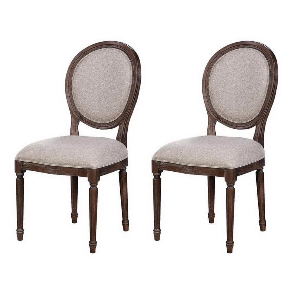 For around your dining table or in your home office, this Dining Chair finished in our rich Tumbler Brown will be absolutely perfect. Slender fluted legs support the thickly padded and upholstered seat and the round back adds that eye-catching look that makes this stately Dining Chair an instant classic. Sold as (Set of 2).