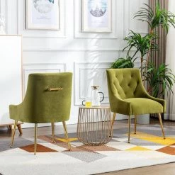 Green Mid Century Modern Tufted Upholstered Dining Arm Chair with Adjustable Legs (Set of 2) (22 in. W x 33 in. H) by KINWELL
