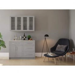 5-Piece Gray Home Bar Cabinet Set with Contemporary Matte Black Handles by NewAge Products