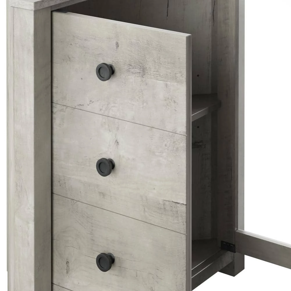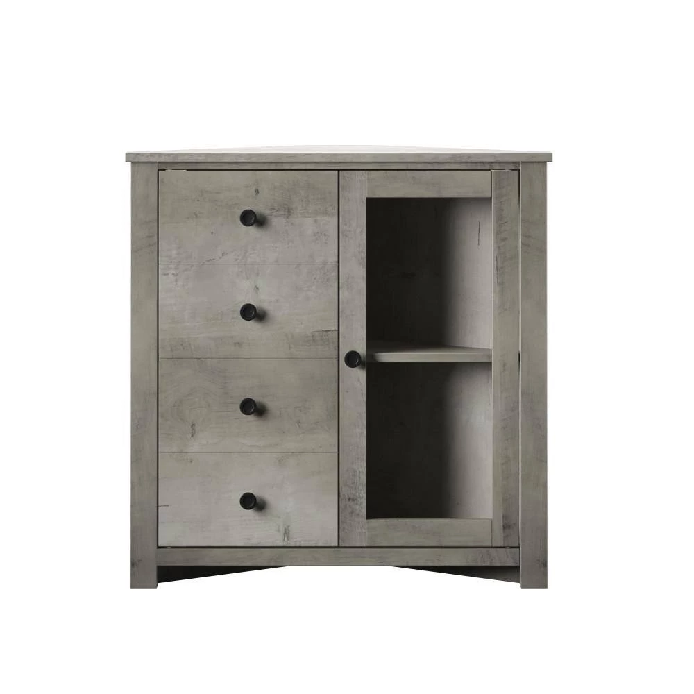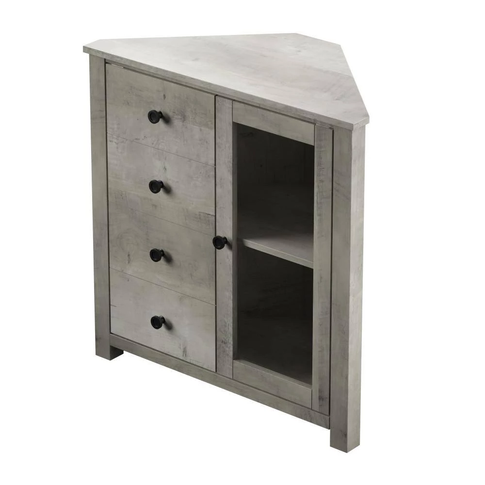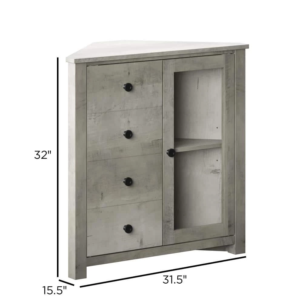 Get beautiful, traditional style and the extra storage you want all in one space-saving solution with this corner accent cabinet. The double door cabinet features a glass-paned door on one side and a faux drawer design on the other. Behind the cabinet doors, one interior shelf can be adjusted to three different height levels to meet your storage needs. Use this accent cabinet anywhere in your home, from the living room to the bathroom and everywhere in between. Just the right size for items like small plates and vases or toiletries and hand towels, this accent cabinet is a perfect fit for any room.